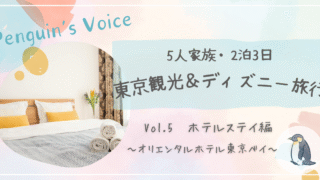 ぺんぎんのつぶやき。 【5人家族 2泊3日】東京観光+ディズニー旅行 vol.5 ホテル編 遠方組・大人数におすすめ!オリエンタルホテル東京ベイの「マラン・デラックス」は5人1部屋でも1人1台ベッド&洗面台2台の快適宿泊。新浦安駅直結&無料シャトル利用可のディズニーパートナーホテルでアクセスも抜群!楽天トラベルでのお得な予約方法も解説。 2025.10.13 2025.10.16 ぺんぎんのつぶやき。
