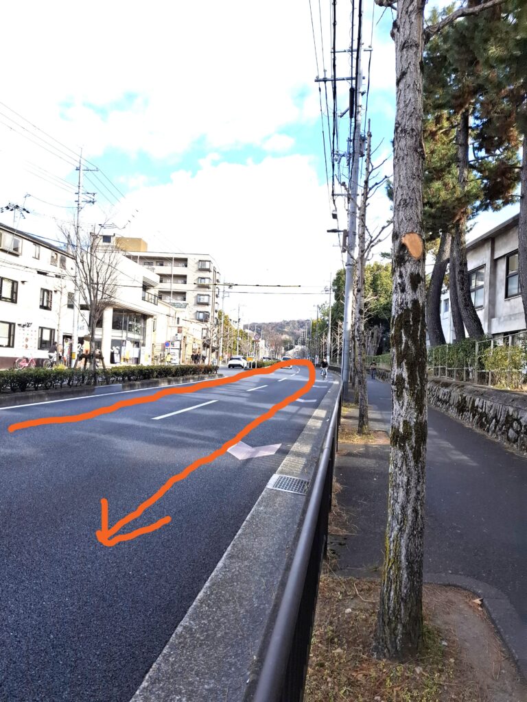 ここでは鴨川沿いを走りますが、河川敷ではなく一般道の方を走ります。