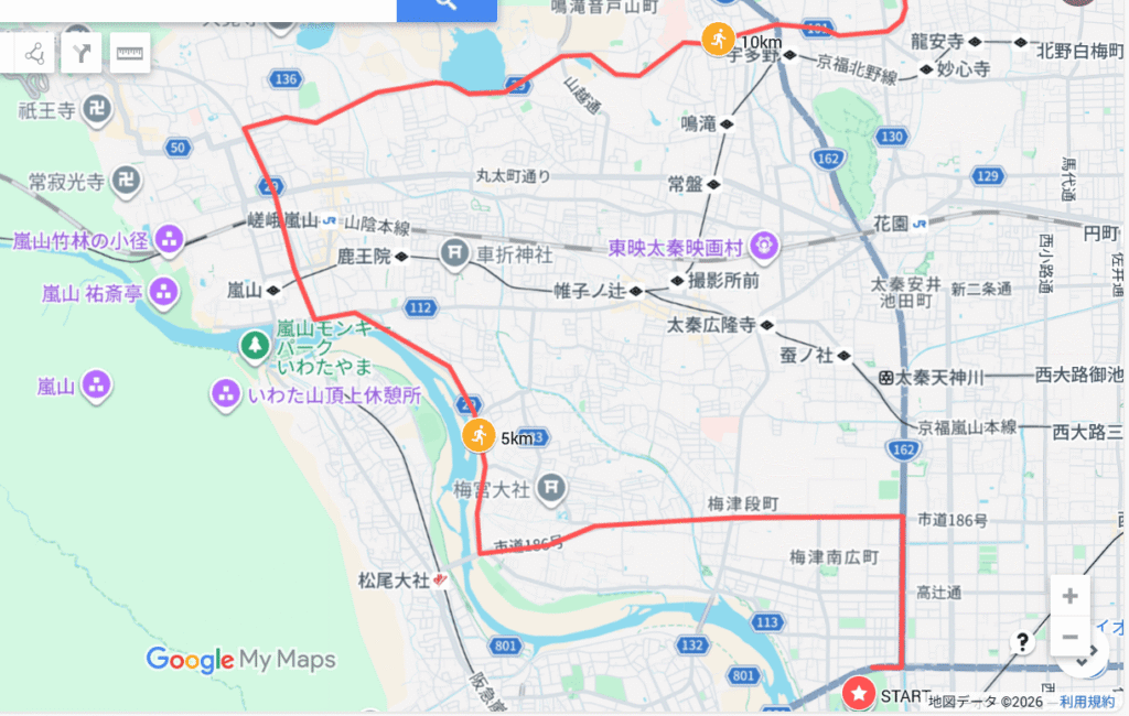 本番までに試走したい!という方は、嵐山手前の高架や植物園など、本番通りには走れない場所もあるのでご注意くださいね。