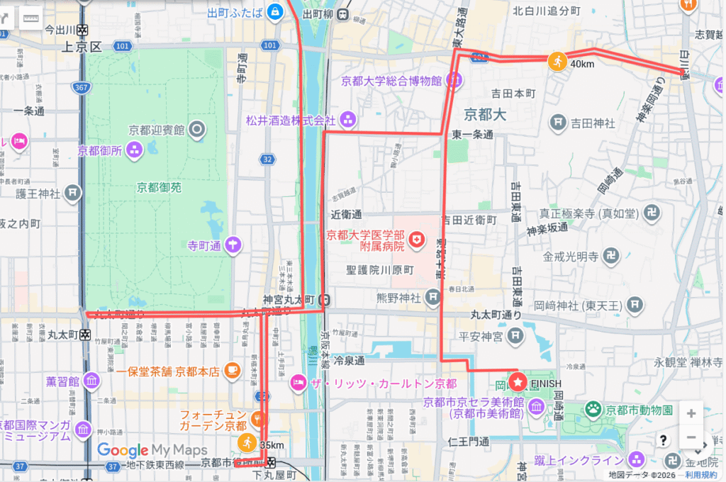 - 中盤(~30km):北山通や植物園のイベントを楽しみながらリズムを作る。