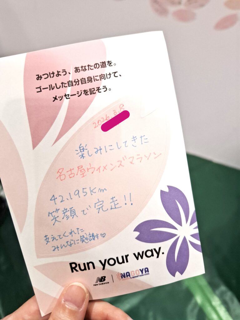 それでも憧れの名古屋ウィメンズマラソン、一度はDNSの可能性も頭をよぎったけれど、家族をはじめ職場の人やXのFFさんなど多くの人の理解と協力、応援のおかげでなんとか立てたスタートライン。