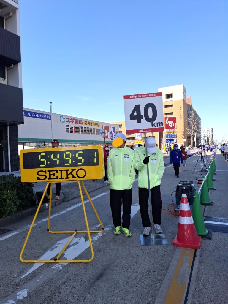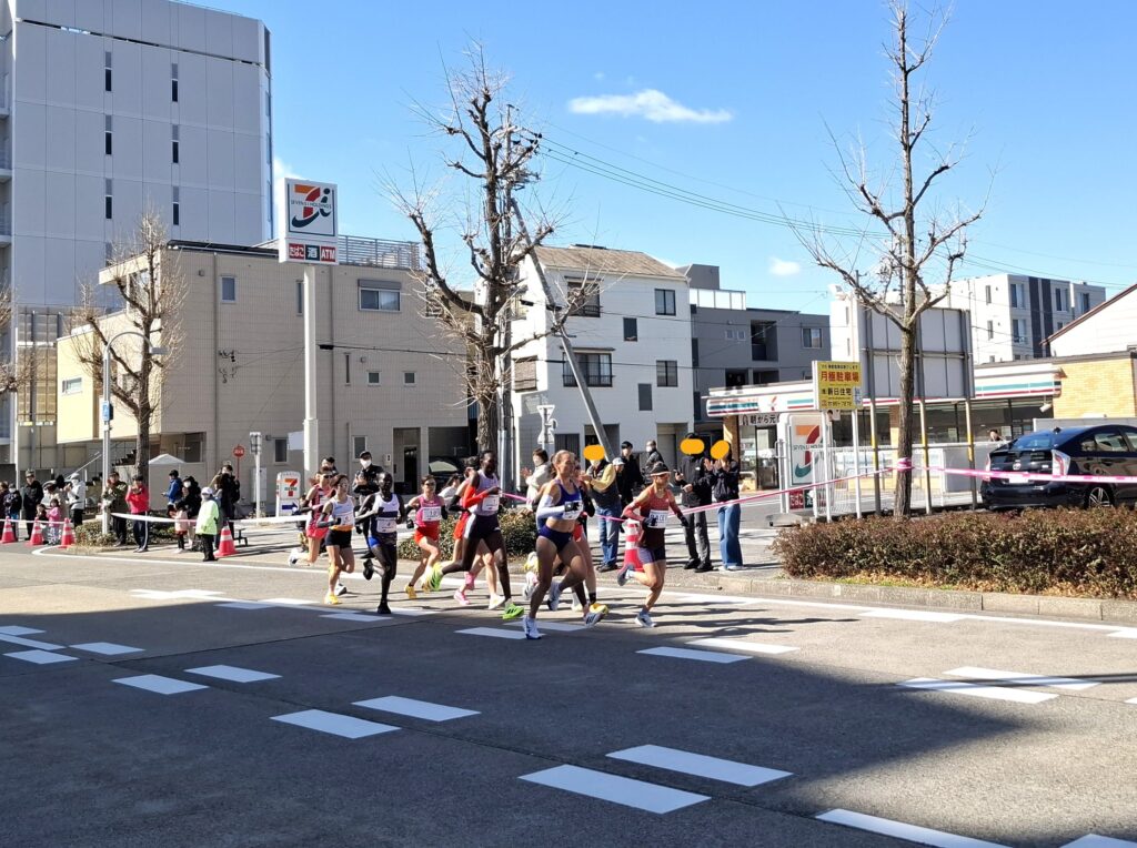 スタート時刻が10時20分で、速いランナーは1時間以上前にスタートしている名古屋ウィメンズマラソンのランナーに途中で追いつき抜いていきます。