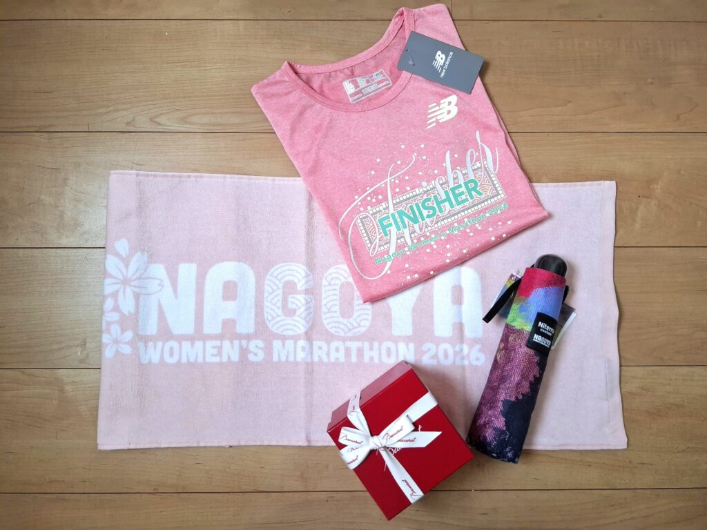 フィニッシャーTシャツ(ニューバランス)、フィニッシャータオル(フェイスタオルサイズ)に加え、ゴールドスポンサー企業「日本特殊陶業(Niterra)」からは晴雨兼用の折り畳み傘も。